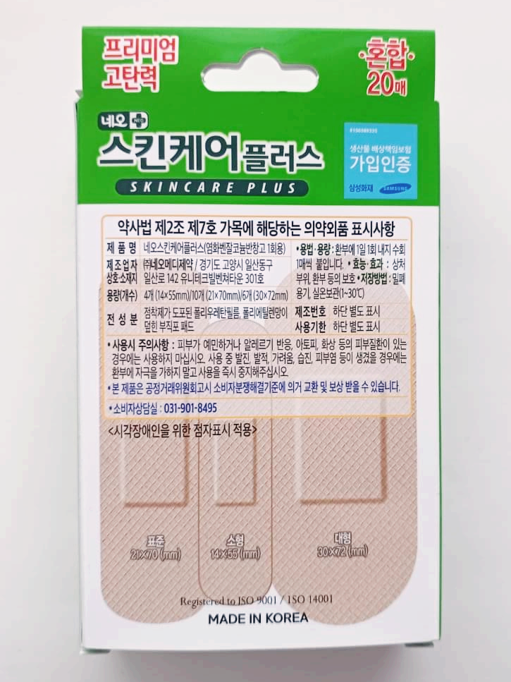 네오스킨케어플러스 혼합형 20매 고탄력밴드 생활방수 다양한 상처 반창고 국산 통기성 좋은 밴
