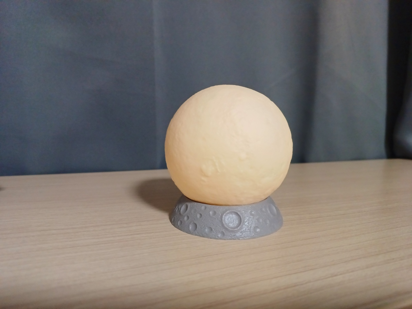 달 사이즈는 야구공보다 조금 더 큰사이즈고 달을 들어서 밑에 보면 전원 스위치가 있어요. 아주 작은 동그란 동전배터리 3개 들어가 있어요.