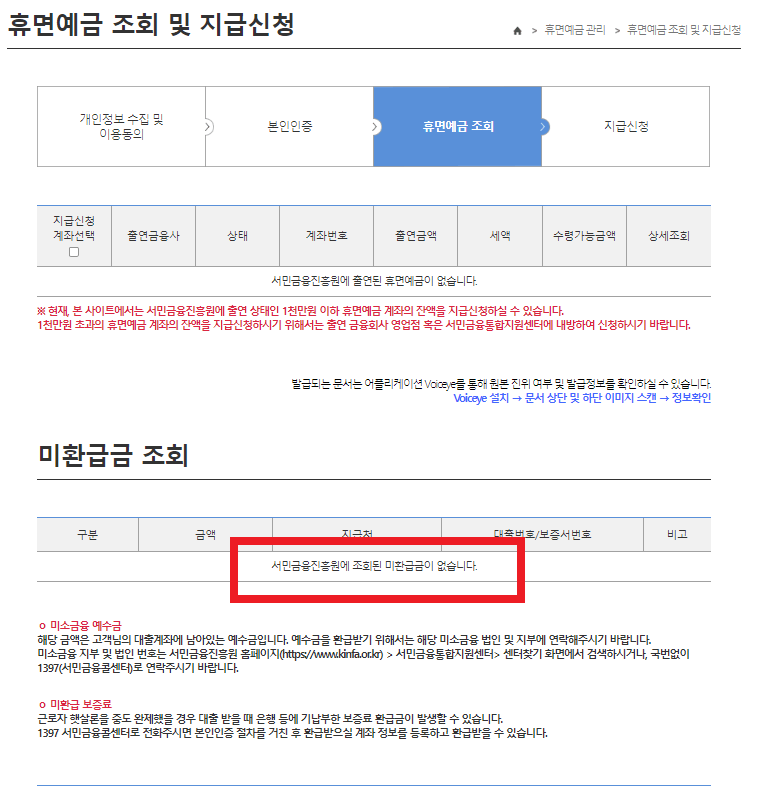 ◐ 휴면예금 조회하기